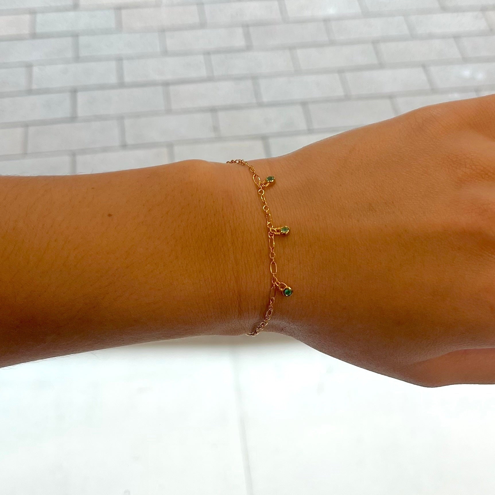 Crafted from 18k gold vermeil, the Ceres Bracelet features three green onyx pendants suspended from a fine Figaro chain.