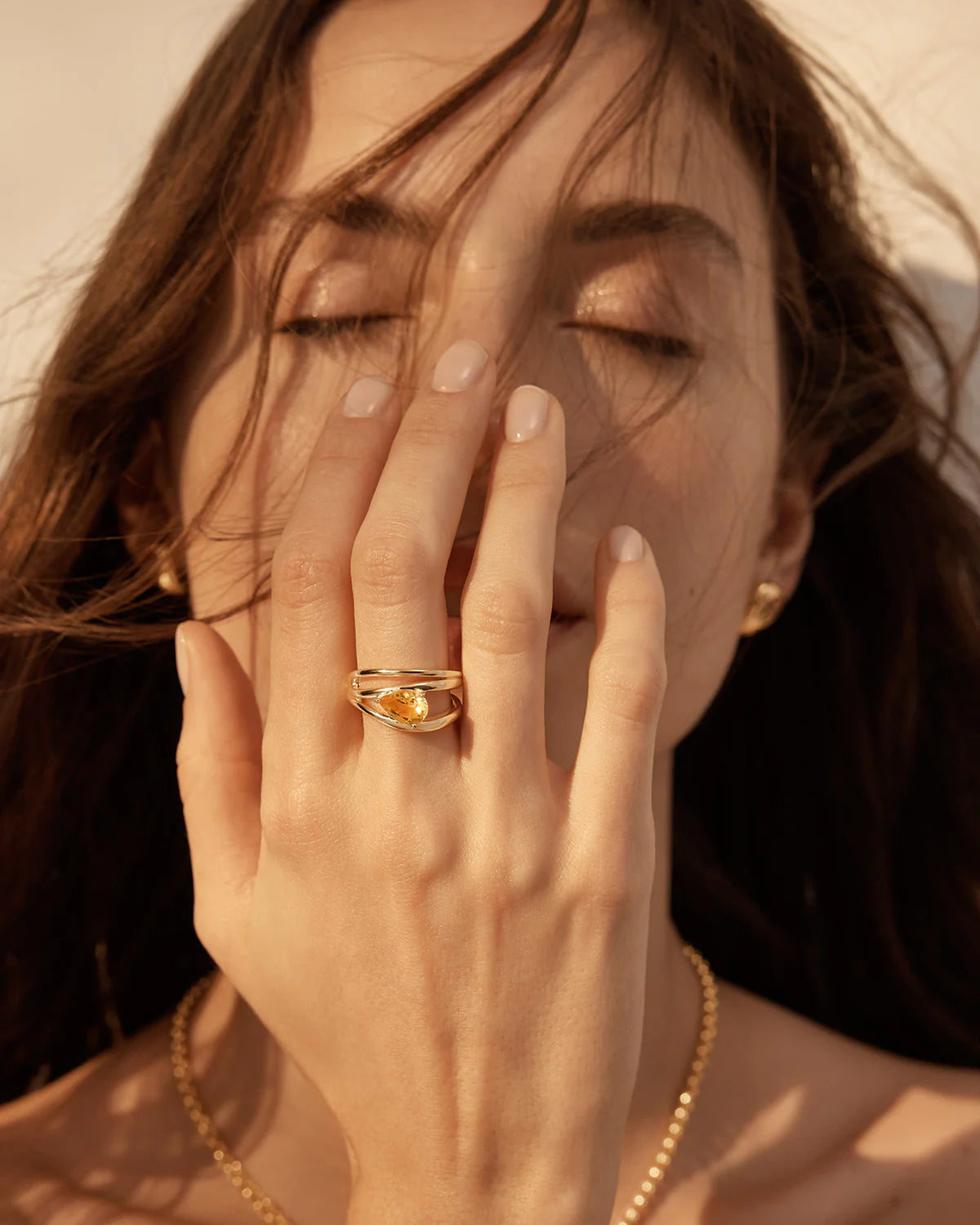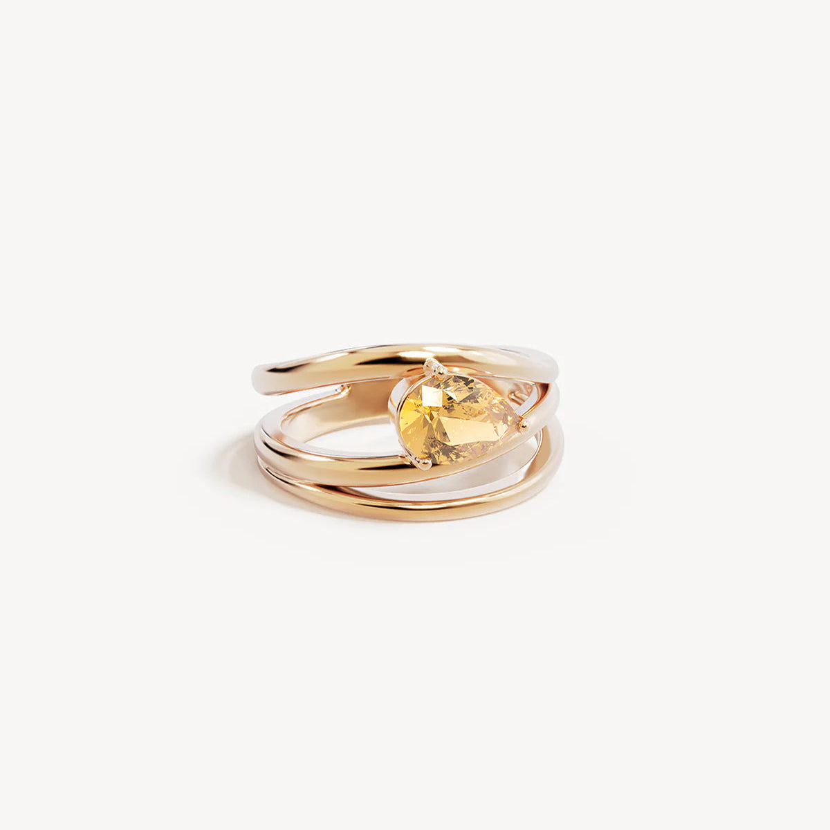 Statement, triple band illusion ring set with a pear-cut natural citrine.