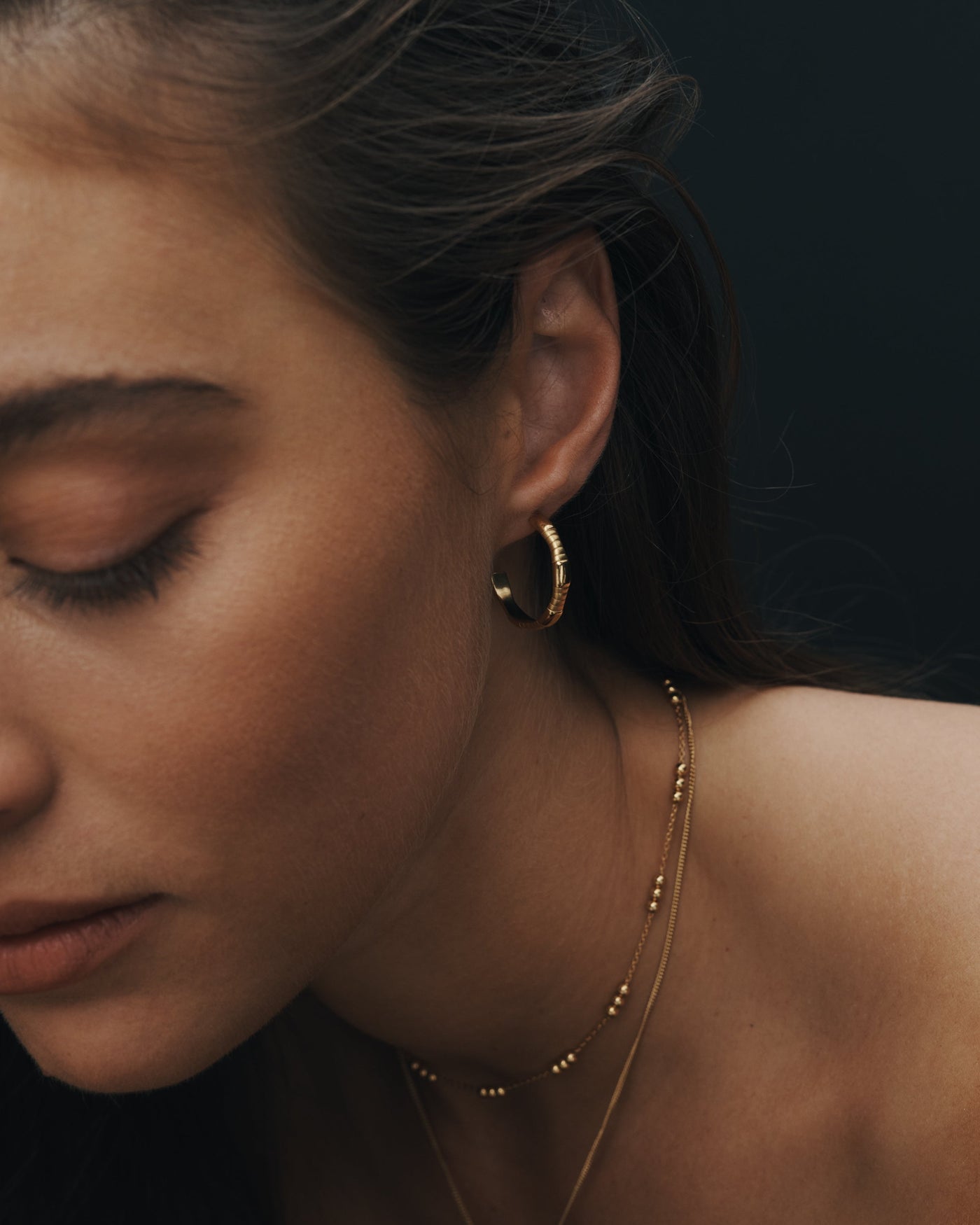 Crafted from 18k gold vermeil, the Alba features a fine cable satellite chain adorned with a trio of polished beads in a rhythmic sequence.