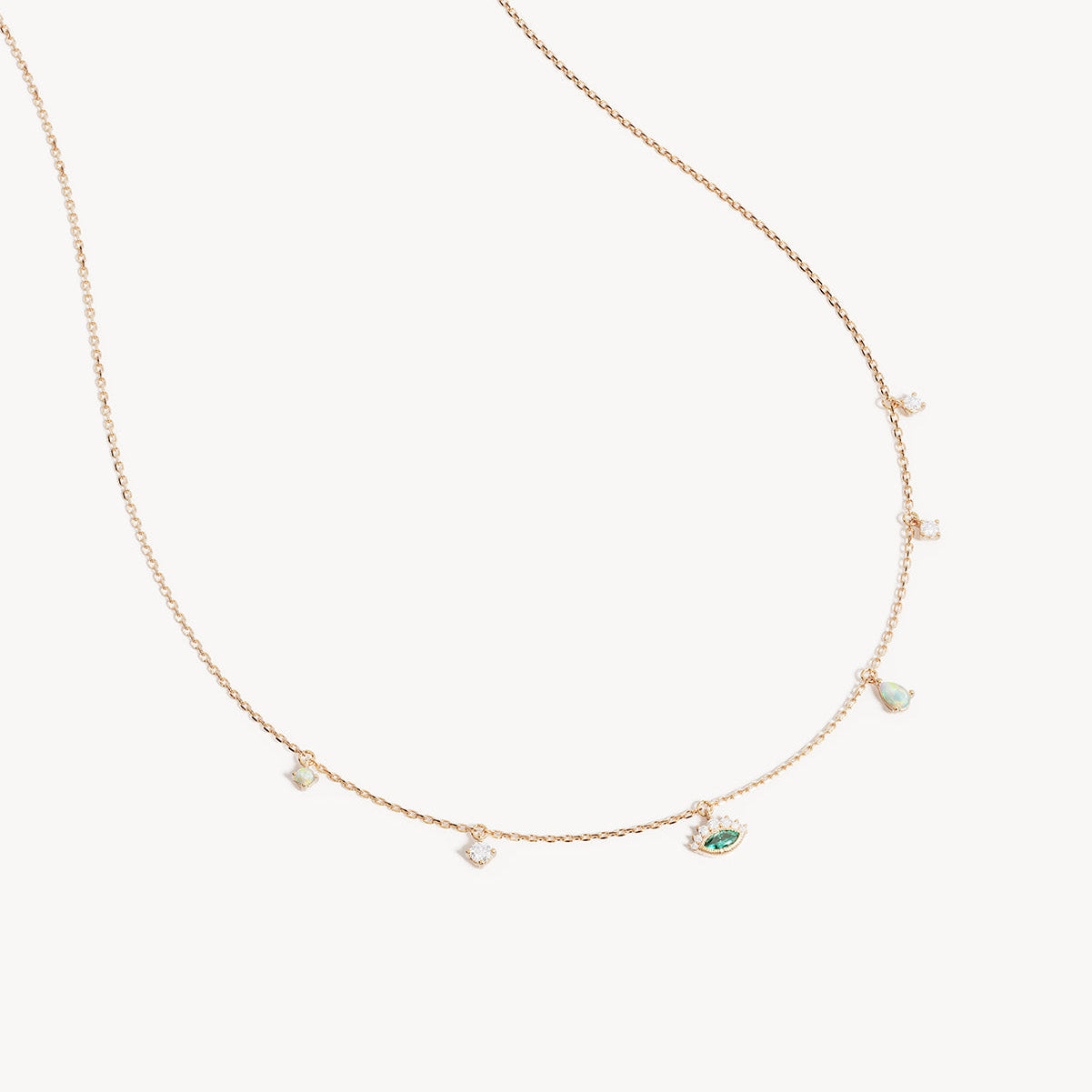 Set with lab-grown opals and lab-grown blue Paraiba marquise-cut gemstone, by charlotte's luminous evil eye will assist you in shedding all that does not serve you, allowing you to move into the new year with purpose and peace.
