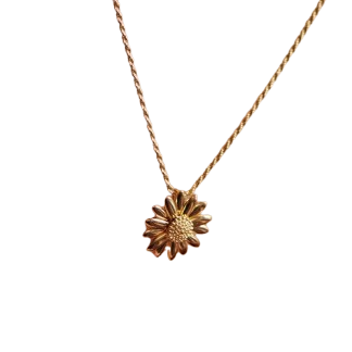 Crafted in recycled silver with 18ct gold plate, this piece features a small daisy pendant hung on a rope chain.
