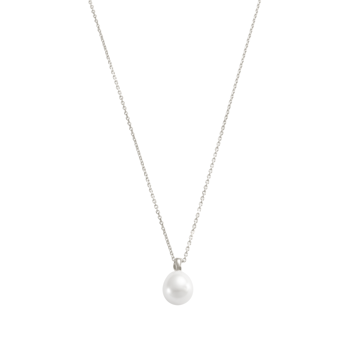 The Maris Pearl Necklace showcases a suspended pearl, delicately floating on a fine, long chain.