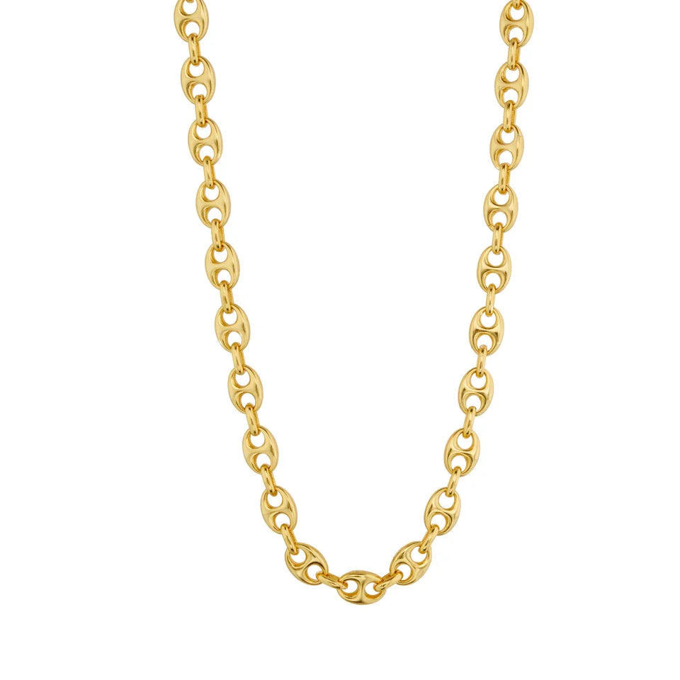 The Avant Studio Goldie Necklace is perfect for layering up with finer chains or wearing on its own. Made from little links that form a mariner chain. It's inspired by the heavy chains used to attach the anchor to on a ship. It's sturdy and timeless.