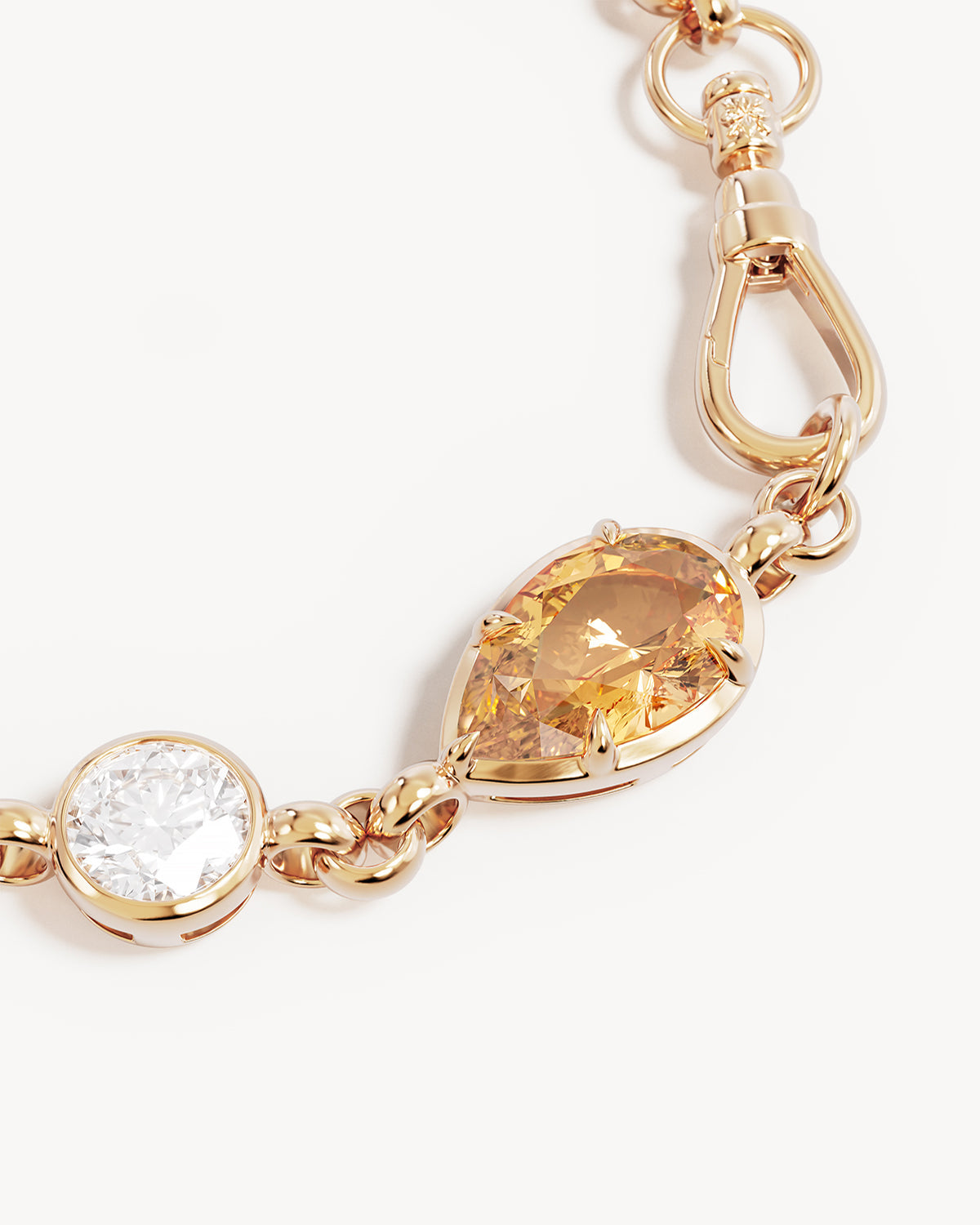 Set with a pear-cut natural Citrine and round cubic zirconia.