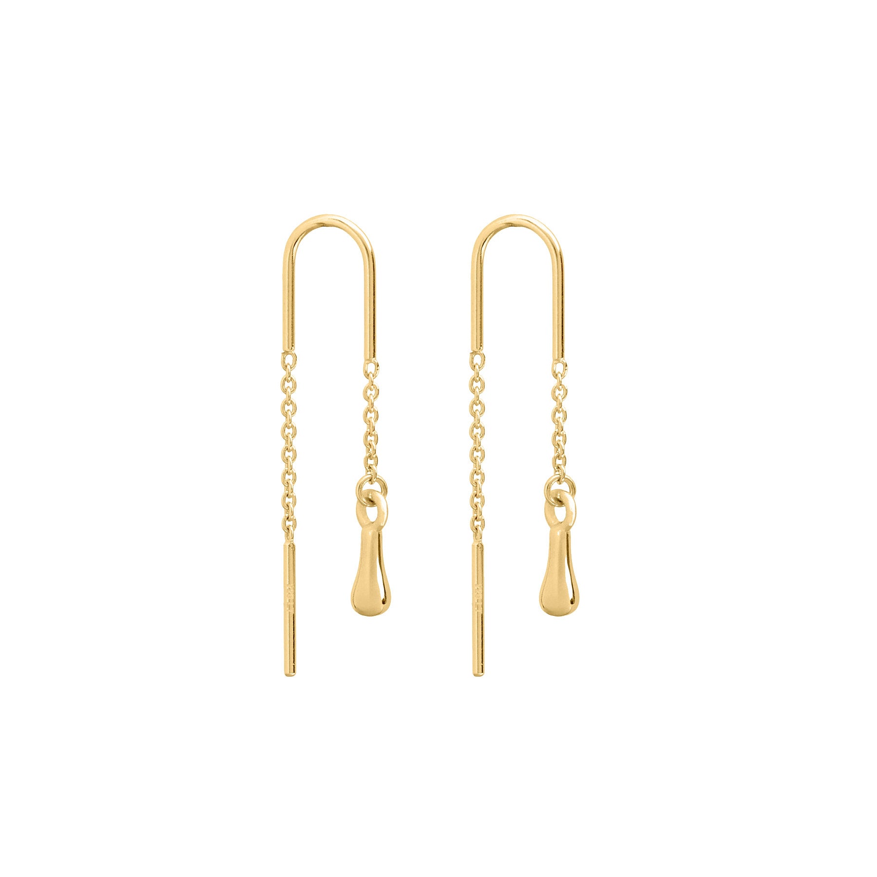 Featuring a drop shaped pendant hanging from a chain, these thread earrings are extremely comfortable.