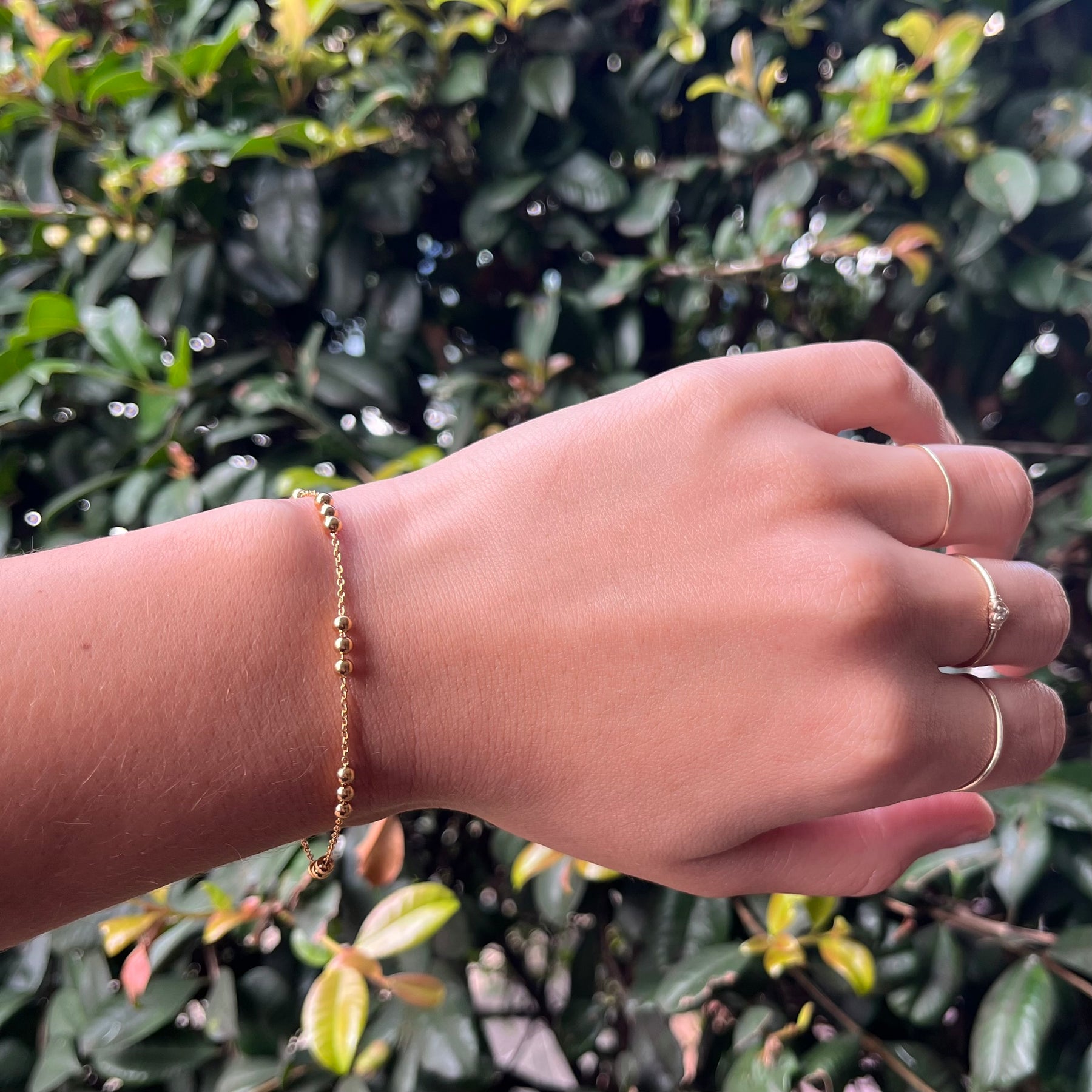 A fine cable satellite chain in 18k gold vermeil, the minimalist Alba Station Bracelet features a trio of polished beads in a rhythmic sequence.